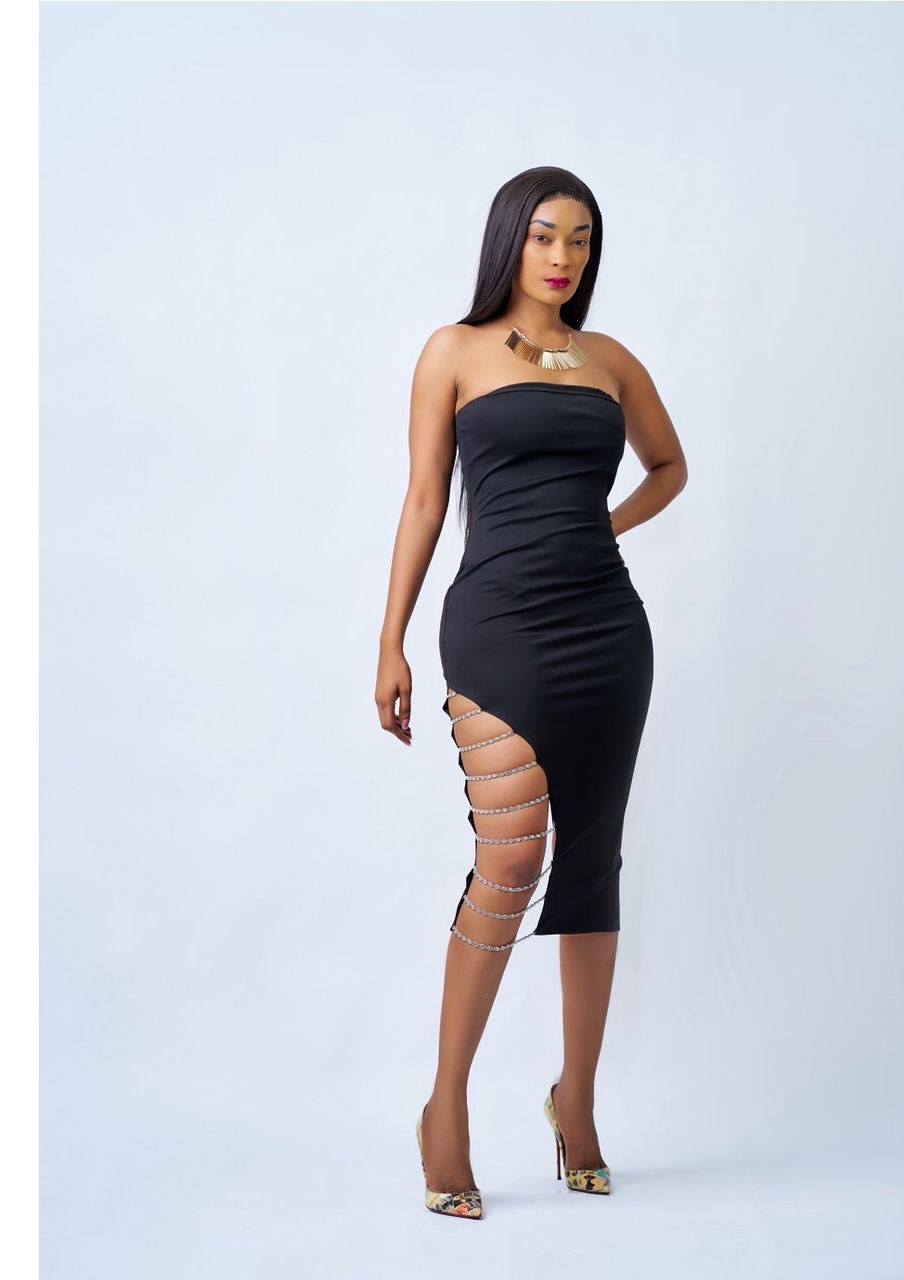Robe bustier à fente perlé