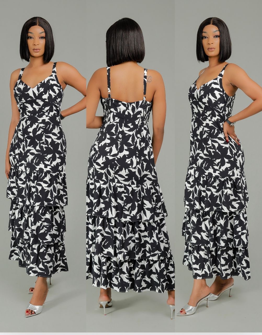 Robe fleurie blanc noir