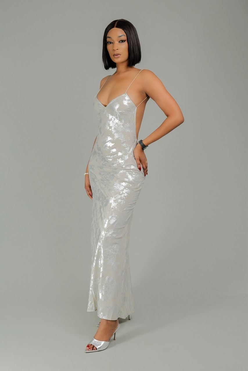 Robe métallique dos nu