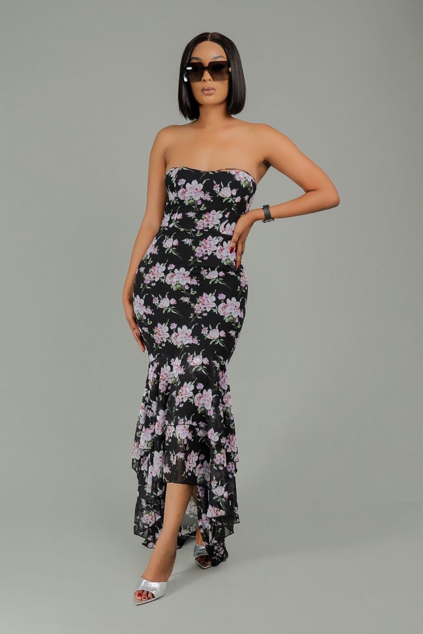 Robe motif a fleur bouffante