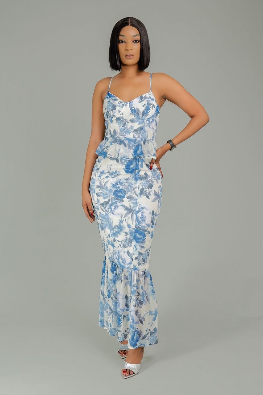 Robe fleurie bleu blanc
